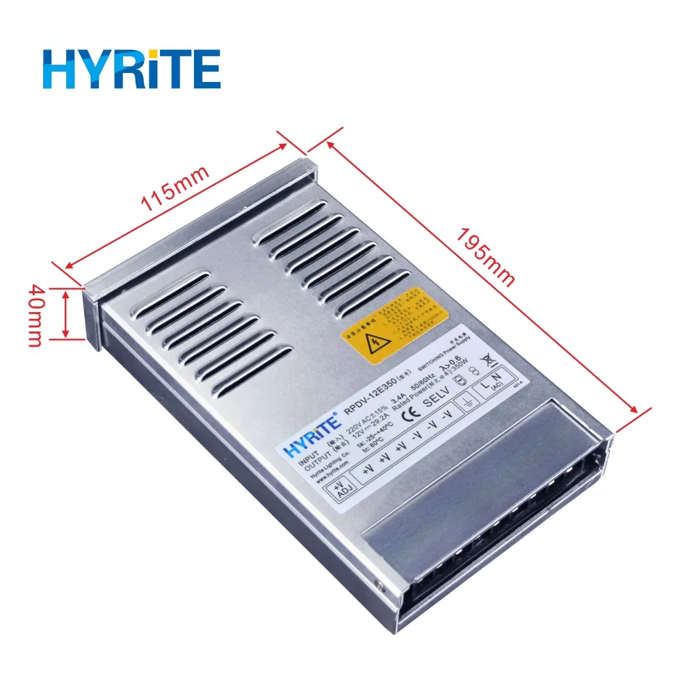 350W 400W 12VDC Semi-Potting Rainproof Switching Power SupplyBrief IntroductionSlimline design with fully sealed aluminum housingProtections:Short circuit / Over loadDesigned for indoor signage,decoration or lighting applicationsSmall size,light weight,easy installation100% full load burn-in testSem......