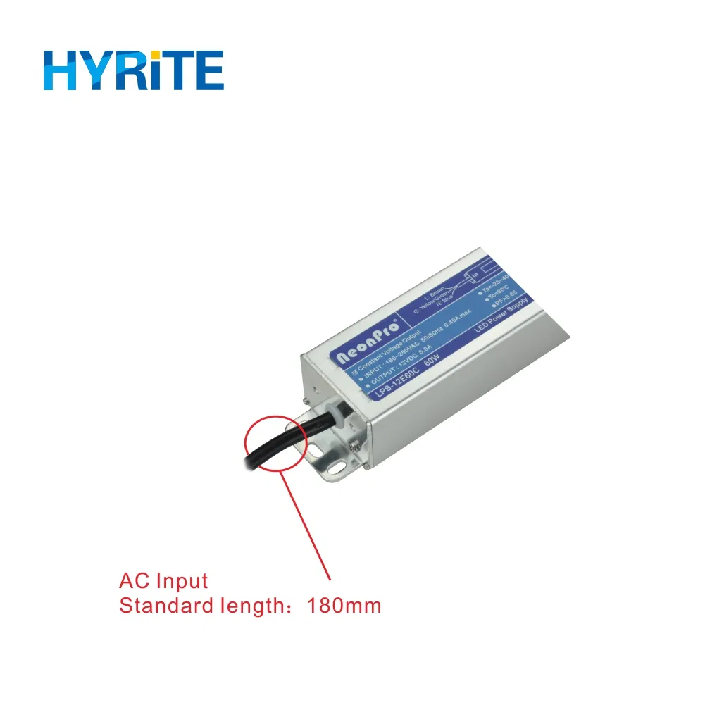 Constant Voltage Output 60W 12V 5A Switching LED Power SupplyBrief IntroductionSlimline design with fully sealed aluminum housingWaterproof IP67,suitable for any Working EnvironmentWith the newest topological structure,average efficiency up to 90%Short circuit,overload protectionSpecially for applic......