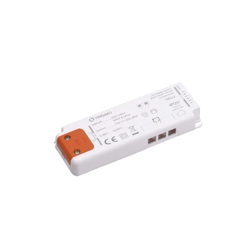 Item No.:YSL20C-1201660YSL20C-2400830Power:20WInput Voltage:AC100-240VOutput Voltage:DC12VDC24VMax Output Current:1.66A0.83ATC:85ºCPFC:-IP Rate:IP20Dimension:128*46*17MM