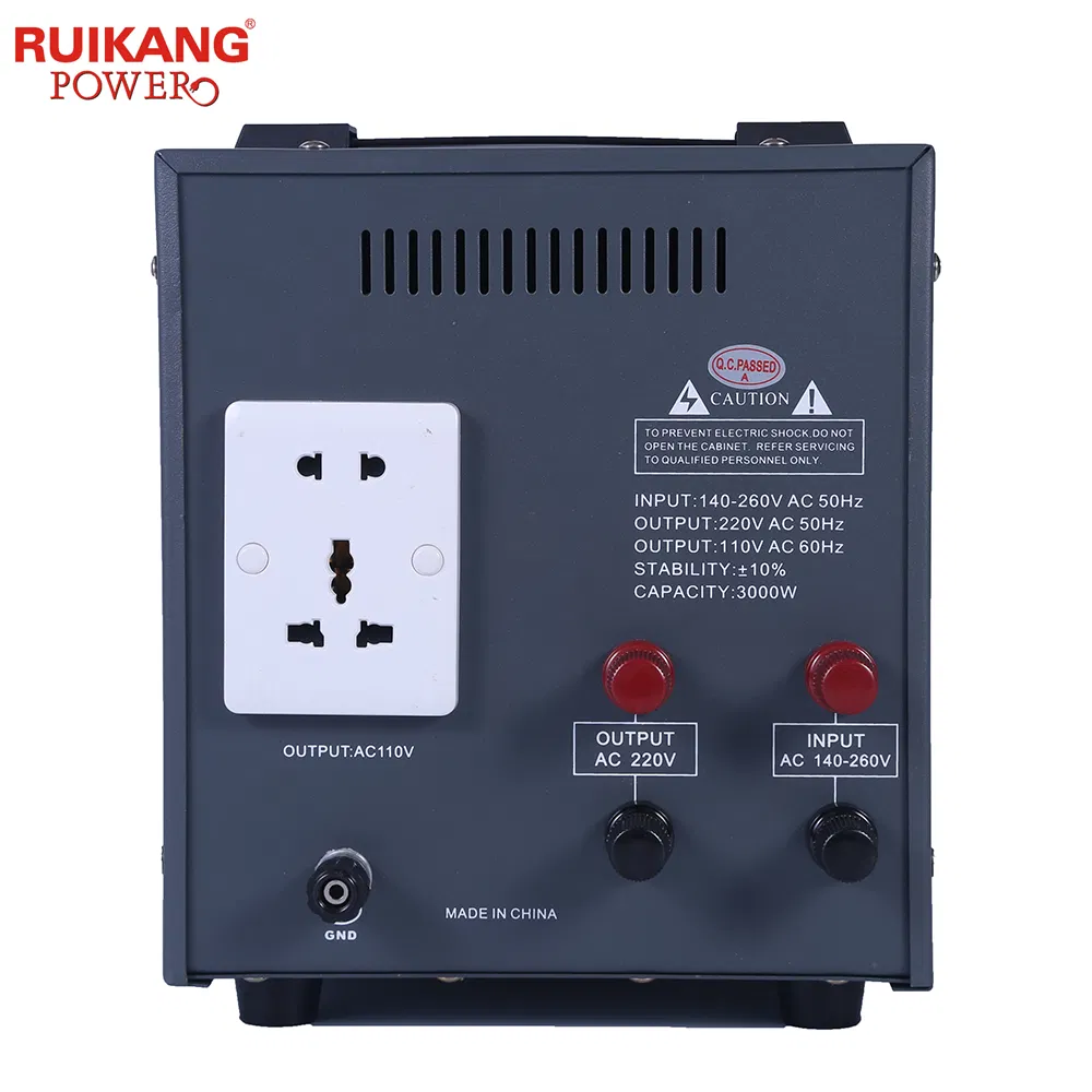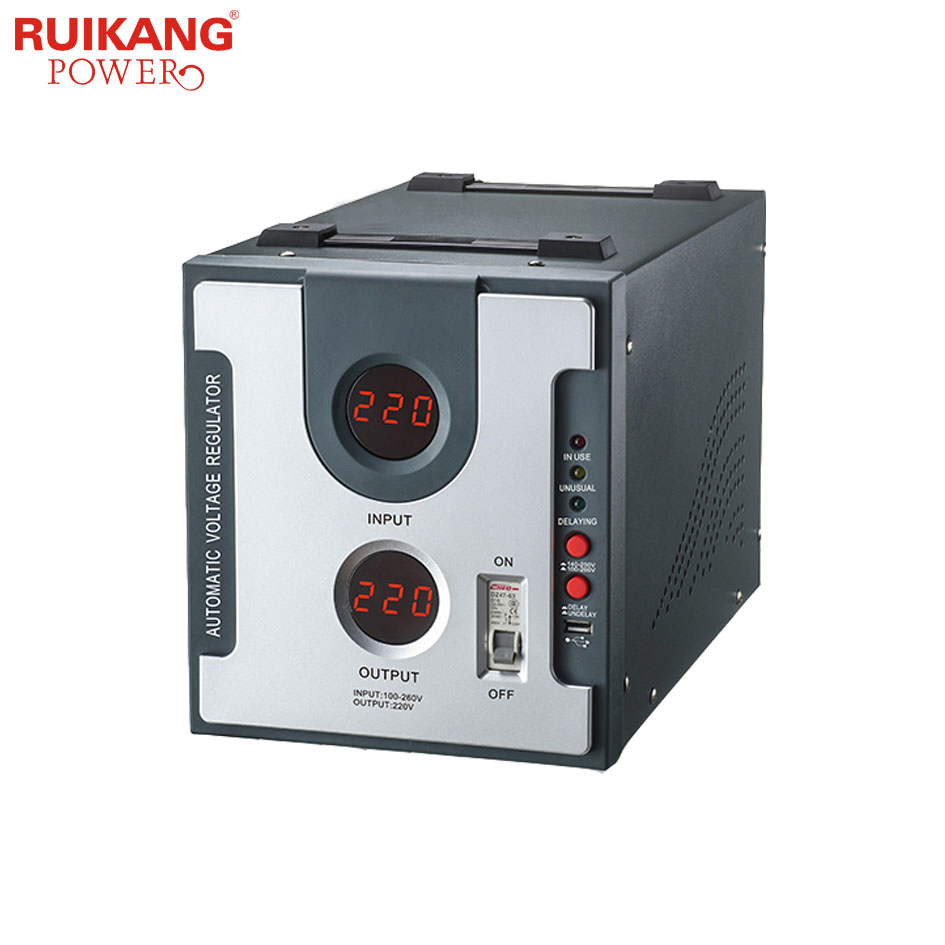 Digital Display Automatic Voltage Regulator with USB cable for ApplianceProduct Description:Product specifications:Model500VA1000VA1500VA2000VA3000VA5000VACapacity80%actual power when input voltage reach to 190VTechnologyRelay type.Aluminium coil.EI transformer/Toroidal transformerPhaseSingle phase ......